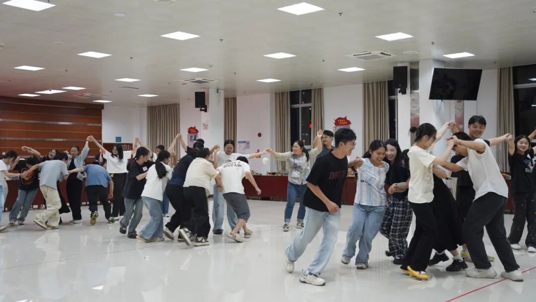 游戏环节将本次活动推向高潮,新员工们分为八组,进行了“队列兔子舞”“穿肩过河游戏”“气球小火车”“你做我猜”等四轮趣味比拼。这些游戏不仅充满欢乐,更注重团队默契配合,考验着新入职职工的沟通能力和协作精神。现场气氛热烈,队员们齐心协力完成每一个游戏,欢声笑语不断,在游戏中加深了新职工之间的默契与友谊。
