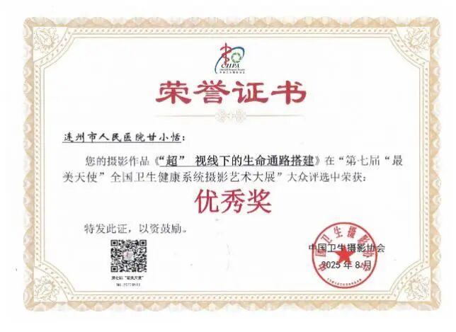近日,由中国卫生摄影协会主办的第七届“最美天使”全国卫生健康系统摄影大展圆满落幕。本次活动以“敬佑生命、救死扶伤、甘于奉献、大爱无疆”为主题,旨在通过影像记录时代风采,讲述温暖人心的医患故事。