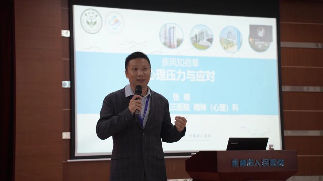 在讲座中,连州市人民医院负责人张明以《心理压力的识别与应对》为题,紧密贴合临床工作实际与岗位特性,以其深厚的专业知识和丰富的管理经验,从多维度对心理压力进行了深度剖析。他首先系统讲解了压力产生的生理与心理机制,并提供了科学、实用的压力识别方法,帮助医护人员敏锐察觉自身及同事的早期压力信号。随后,他重点分享了多种行之有效的压力应对策略与情绪管理技巧,包括积极认知重构、正念放松训练、时间管理与边界建立等,内容深入浅出,极具实操性。
