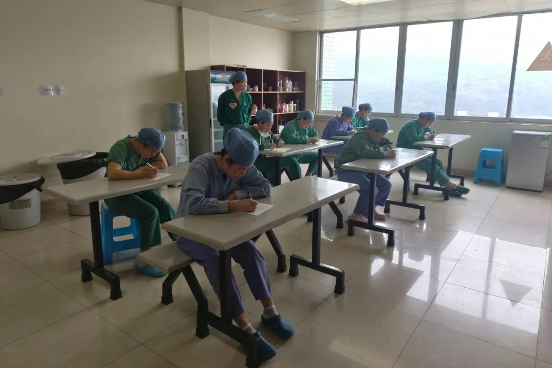 操作考核现场气氛紧张热烈,俨然一场“实战练兵”。腹腔镜组装竞赛中,选手们争分夺秒,从器械规范组装到功能调试,每一步都有条不紊、精准到位,对无菌操作的细节把控更是毫不松懈;护理技能比拼时,大家动作娴熟流畅,器械组装稳、准、快,充分展现了日常训练的扎实成果。评委组严格按照评分标准,从操作规范性、熟练度、精准度及职业素养等维度逐项打分,确保竞赛结果公平公正。