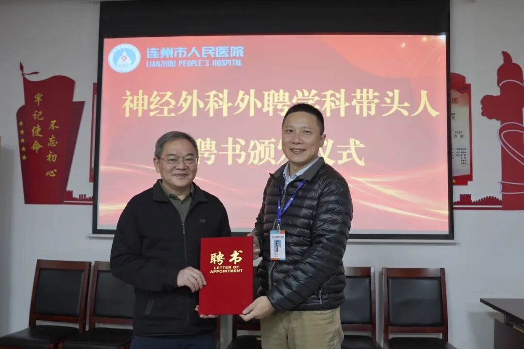 当天上午,连州人医正式聘任郭英教授为神经外科外聘学科带头人,医院负责人张明为其颁发聘书。郭英教授表示,未来将不定期到连州市人民医院开展诊疗、教学、科研等帮扶活动,通过专家下沉、技术指导、人才培养等多种方式,助力连州市人民医院神经外科学科高质量发展,让更多连州及周边地区百姓受益于省部级三甲医院优质医疗服务,切实守护群众生命健康。