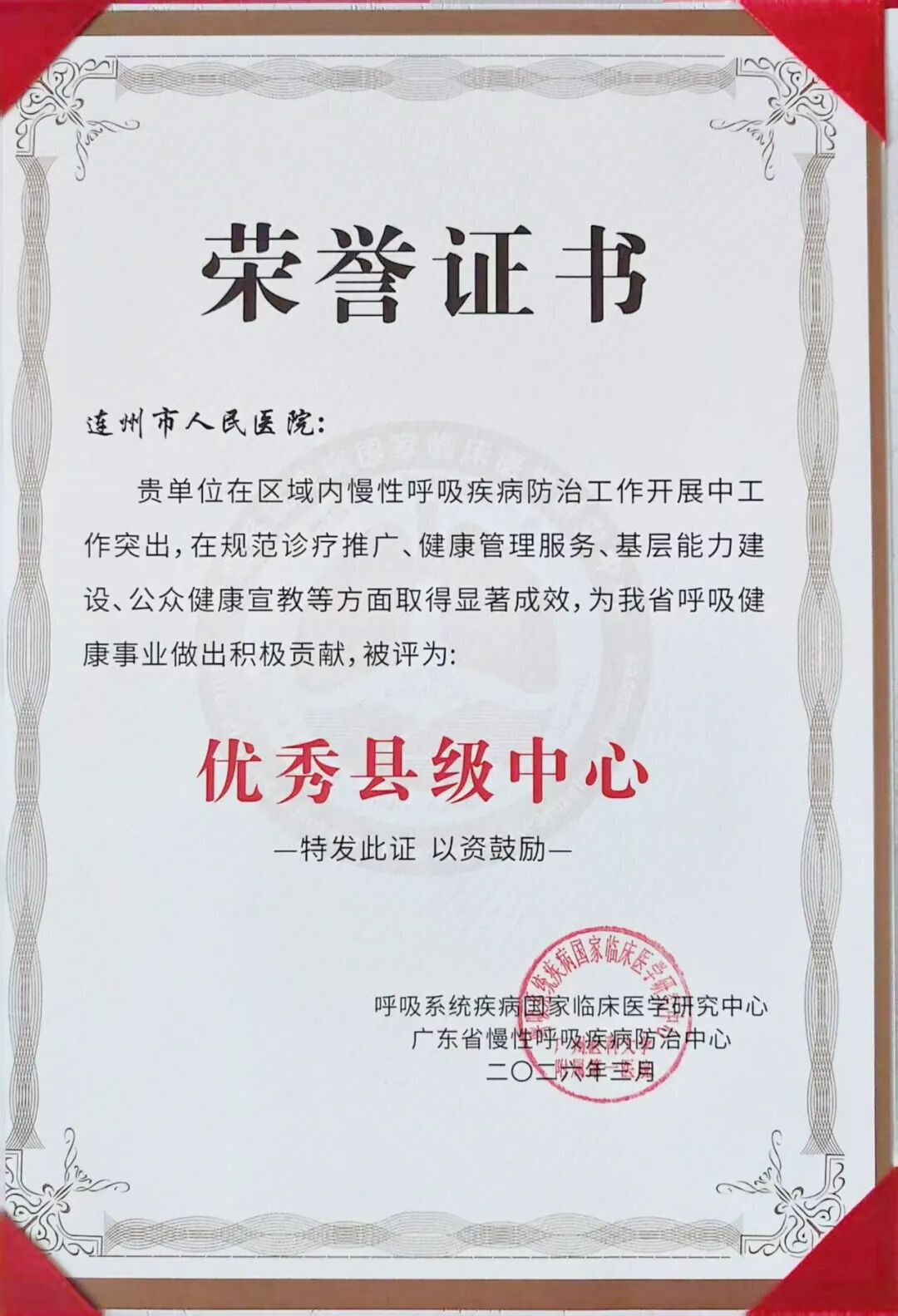 【喜讯】连州市人民医院获评“优秀县级慢性呼吸疾病防治中心”