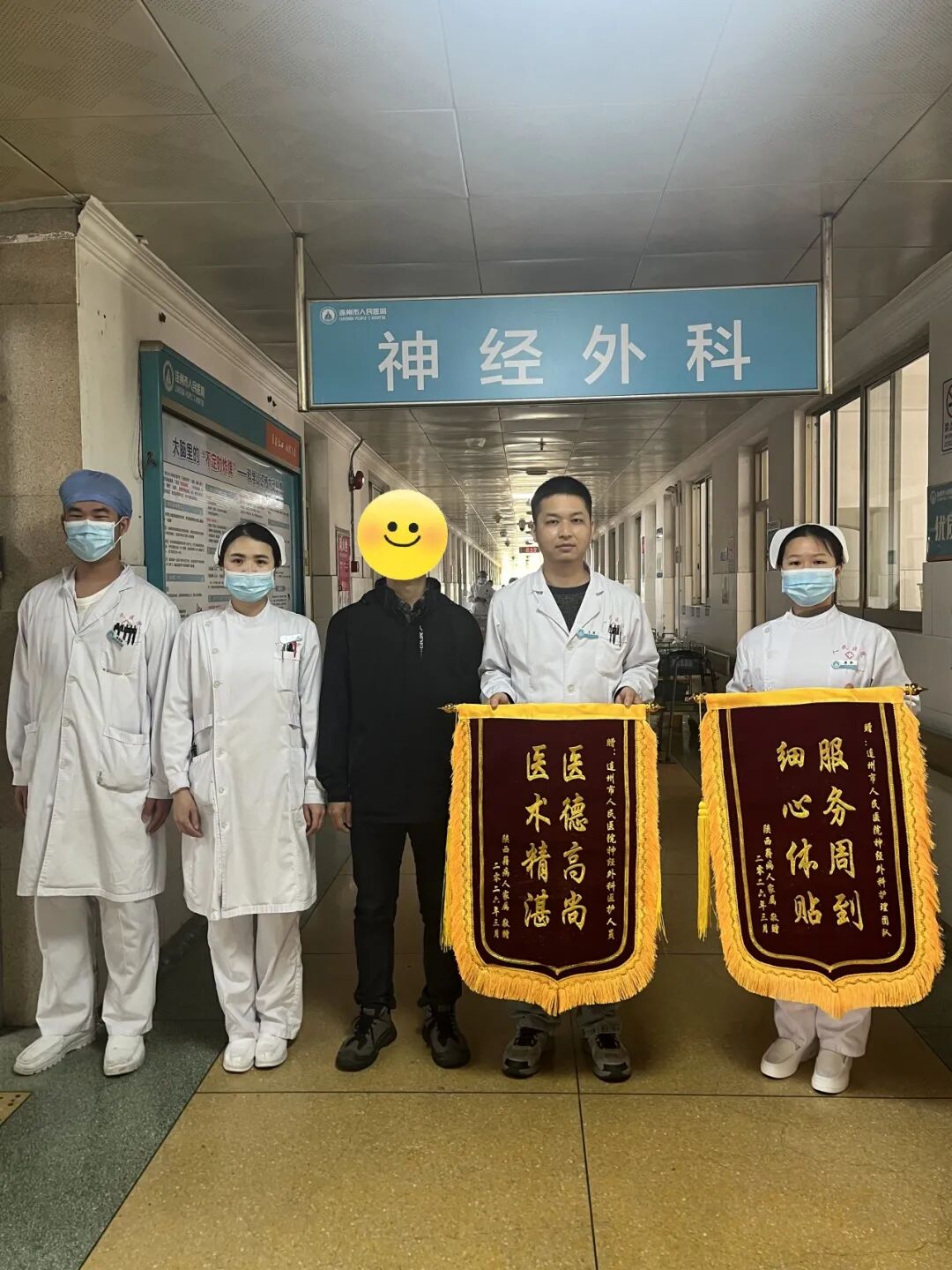 日前,我院神经外科团队凭借精湛的医术、高效的多学科协作与精心的护理,成功救治一名在跨省旅途中突发“大脑半球大面积脑梗死”的急危重症患者。患者陈女士(化名)康复出院之际,其家属分别向医疗与护理团队送上锦旗,以“医德高尚 医术精湛”“服务周到 细心体贴”的赞誉,表达由衷的感激之情。