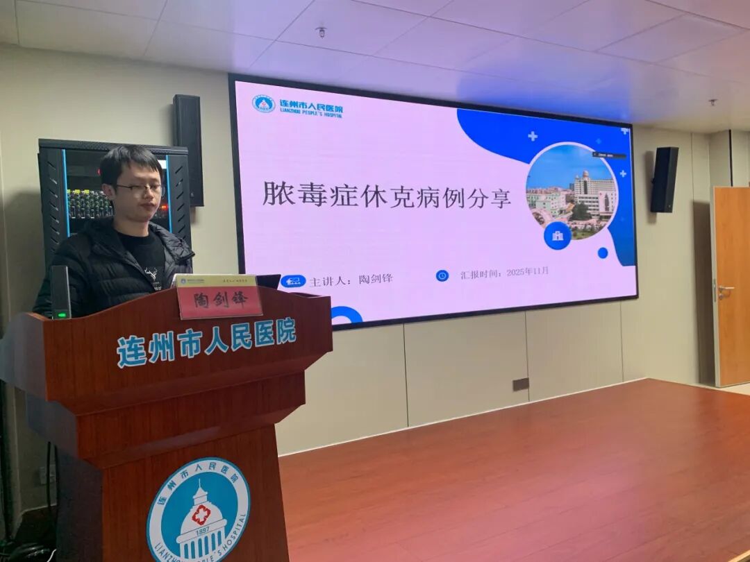 莫文庆主任医师对《脓毒症性凝血病诊疗中国专家共识(2024)》进行了详细解读,使基层医务人员能够及时了解国内最新诊疗规范。连州市人民医院的多位专家也分享了本院在脓毒症诊疗方面的实践经验。邓虹主任医师讲解了“脓毒症休克的早期营养支持治疗”,强调了早期营养支持在脓毒症治疗中的关键作用。黄颖妍副主任医师则聚焦“脓毒症的诊断与早期识别”这一关键环节。张洪举主治医师和张小文主任护师分别从医疗和护理角度阐述了“感染性休克集束化治疗”的实施要点。病例讨论环节成为本次学习班的又一亮点。成叶娣主治医师分享的“ECMO治疗重症肺炎合并ARDS病例”,展示了ECMO技术在重症救治中的成功应用。连州市中医院的刘毅副主任医师及连州市人民医院的陶剑锋主治医师也分别分享了感染性休克病例、脓毒症休克病例,通过实际案例的分析与讨论,加深了学员们对感染性休克集束化治疗的理解与掌握。