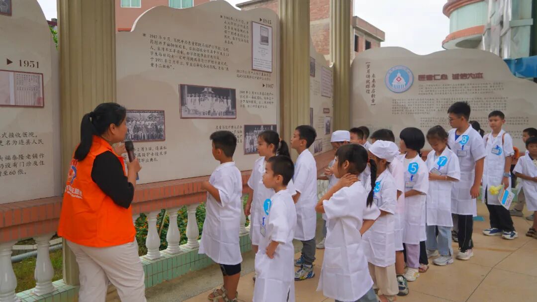 “这是我们医院刚刚建立时的样子,那时候只有一栋小楼,现在已经有这么多栋大楼了。”讲解员指着老照片向孩子们介绍道。