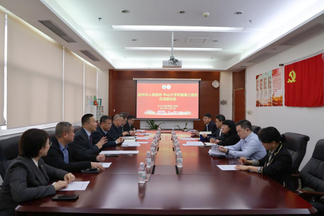 2月5日,连州市副市长何永锋率队前往中山大学附属第三医院(简称“中山三院”)进行交流座谈,双方立足既有结对帮扶基础,聚焦下一阶段帮扶任务,深入交流、凝聚共识,推动两地医疗协作持续走深走实,助力连州卫生健康事业高质量发展。连州市卫健局党组书记、局长李建成,连州市人民医院负责人、中山三院援派干部张明及医院相关人员一同前往。