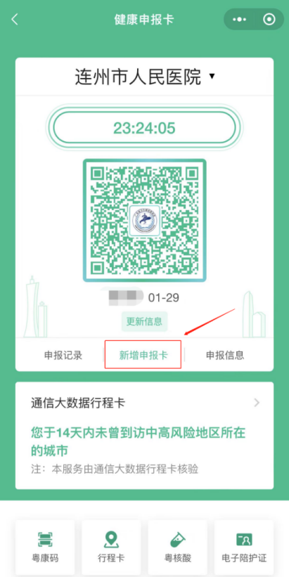 1. 健康申报卡24小时内有效,超过24小时需要重新申报。每次进入医院都需要出示健康申报卡、粤康码和行程卡。