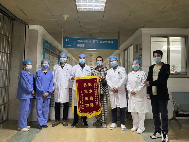 55岁的刘叔因“车祸致颈部疼痛、流血伴呼吸困难1.5小时”由外院转入耳鼻咽喉科。入院时见颈部伤口污染较重,仍在活动性出血;气管大部分断裂,甲状软骨破裂、喉裂伤,四肢多处可见散在皮肤挫伤。病情危重,急送手术室由禤建锋主任主刀行喉功能重建+气管吻合术+气管切开术。术后经过医护人员的精心治疗与护理,刘叔病情稳定,拆线后无伤口感染、咽瘘、进食呛咳及呼吸困难等并发症,康复出院。为感谢医护人员的治疗,刘叔特送来一面锦旗。他表示,全体医护团队在治疗和康复的过程中尽心尽职,让他体会到了医者仁心和充满温情的人文关怀。
