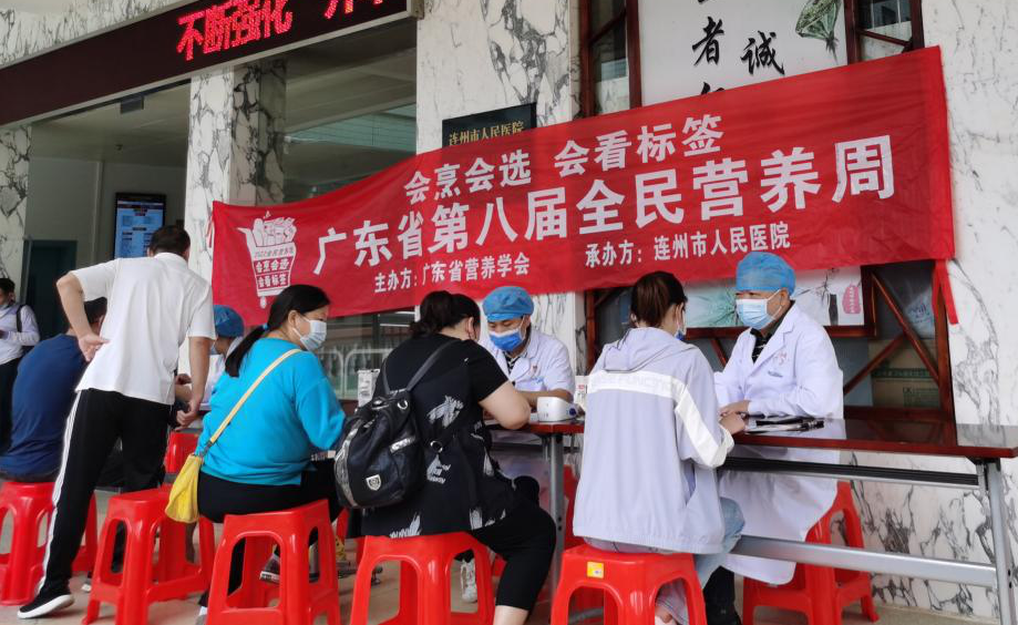 为了更好的帮助市民了解、掌握营养知识,倡导健康的生活方式,5月20日,连州市医疗总院人民医院副院长潘国斌和营养科医护人员、志愿者在医技楼一楼开展以“会烹会选 会看标签”为主题的“全民营养周”宣传义诊活动。