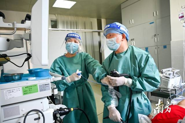 “医院支持我们走出去,同时把专家请进来,提升我们的诊疗水平。”潘新智说,连州人医建立了医务人员外出进修学习和学术交流的制度,如今消化内科学科骨干都去过省级三甲医院进修。近年来消化内科团队逐渐壮大,目前有正高2人、副高2人、中级4人,形成完备的人才梯队,“我们不断提高自己的技术,拉到哪里都可以作战。”让潘新智感触深刻的,还有近年来在政府部门和医院的支持下,消化内科的硬件设备也实现大幅提升。