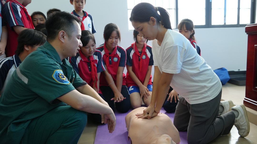 活动现场,医务人员通过现场授课、实操演练、互动问答等形式,现场普及海姆立克急救法和成人心肺复苏急救知识,着重对如何判断无意识无呼吸状态、胸外按压等应急救护方法进行实操示范。活动中,师生们踊跃提问,积极练习心肺复苏操作。医务人员针对师生们操作中出现的问题及时进行纠正和指导,确保师生们掌握到位。