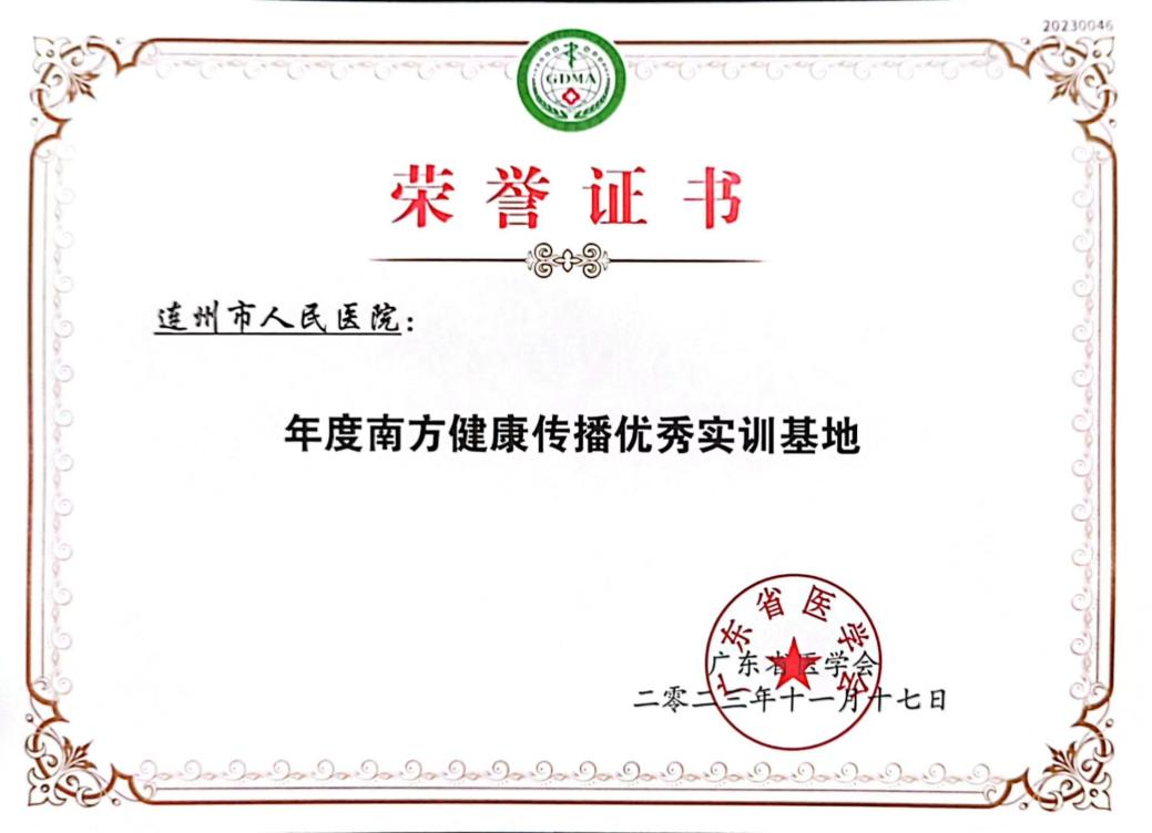 连州市人民医院荣获“年度南方健康传播优秀实训基地”称号