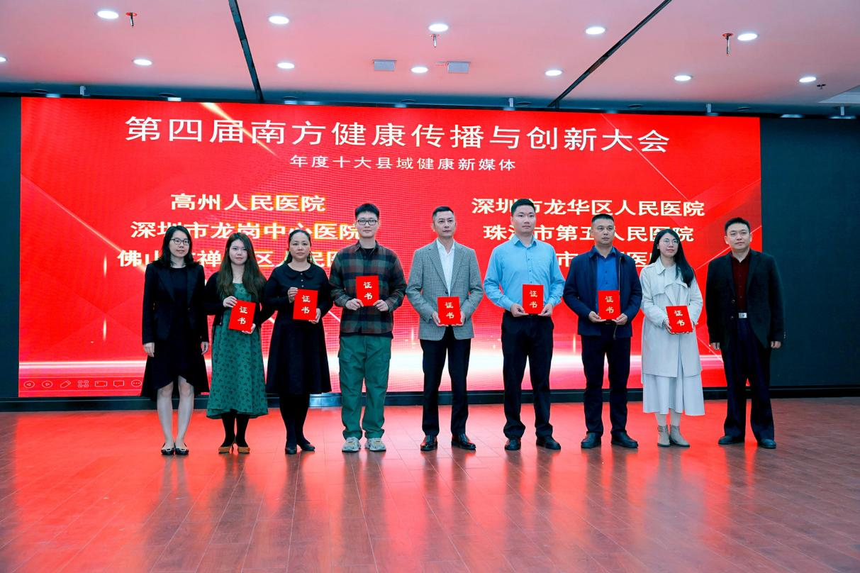 本次大会对2023年度表现优异的单位和个人进行了表彰。连州市人民医院荣获“年度南方健康传播优秀实训基地”称号,连州市人民医院微信公众号荣获“年度十大县域健康新媒体”称号,医院宣传科科长黄丽霞荣获“年度十大优秀护理品牌传播工作者”称号。