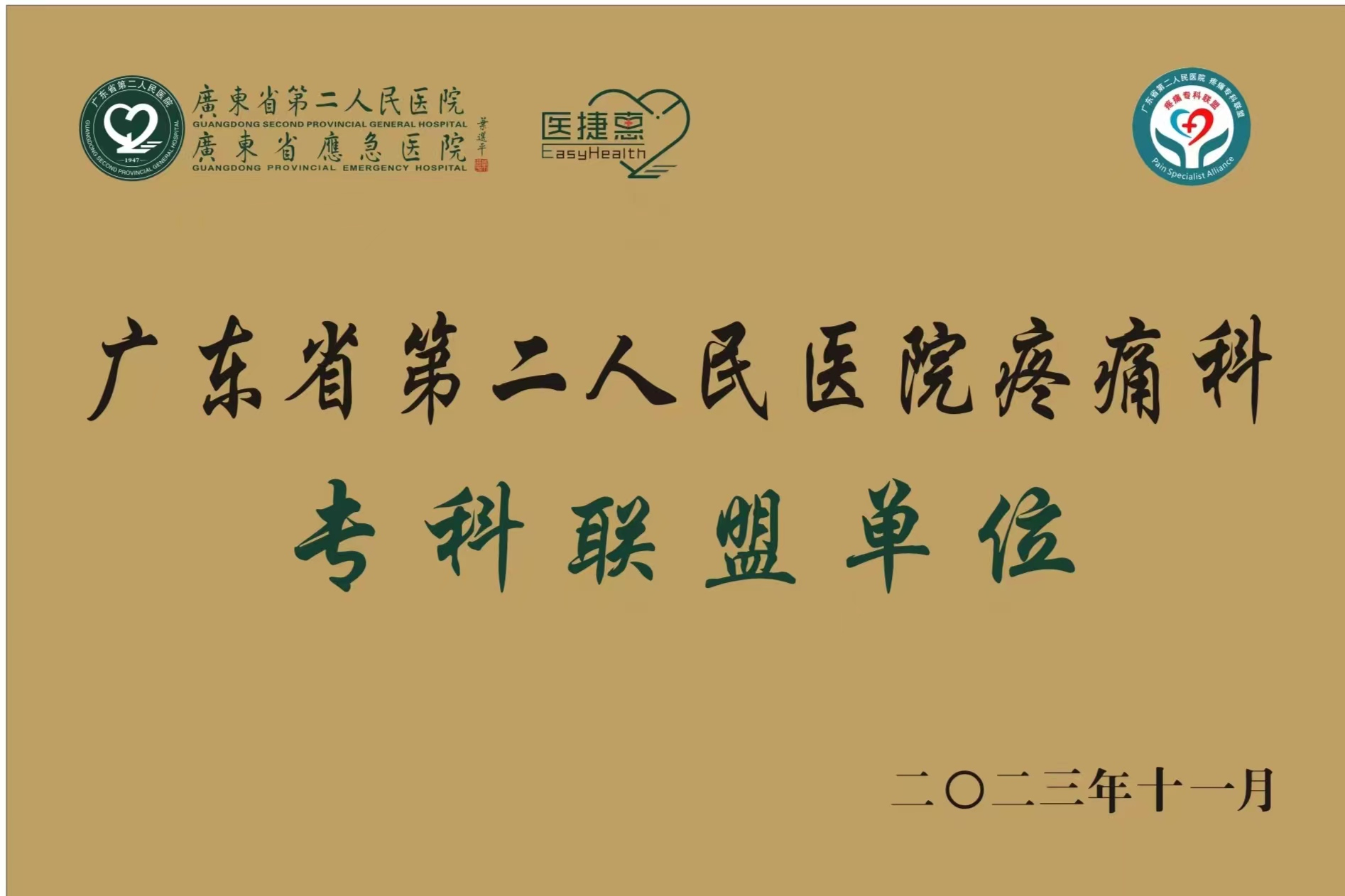 广东省第二人民医院疼痛科是以医疗、教学、科研为一体的综合学科,疼痛专科联盟的成立是进一步推进分级诊疗制度落实的有效举措,有助于优质医疗资源共享,为患者提供更加便捷、精准的医疗服务。加入广东省第二人民医院疼痛科专科联盟,将为我市疼痛患者带来福音,特别是在复杂性和难治性疼痛疾病的诊疗工作中,患者能在家门口享受专家教授会诊或远程指导,这将使我院疼痛康复的工作进一步发展。