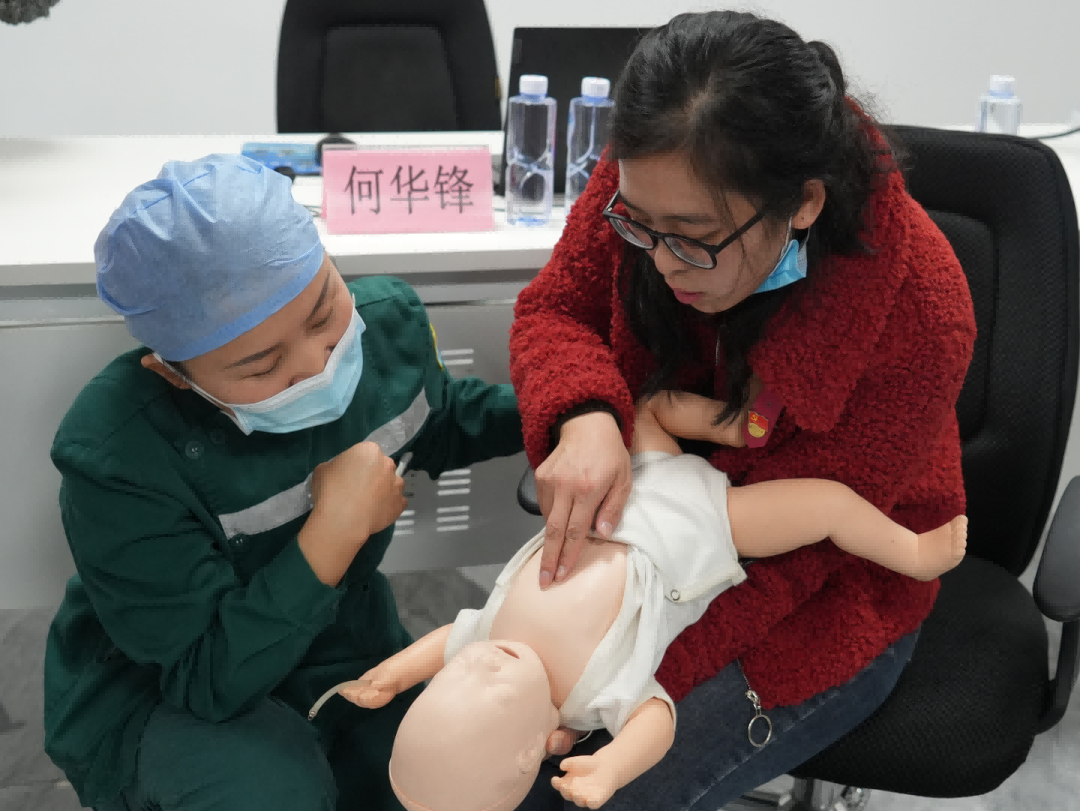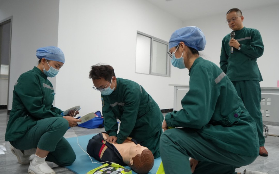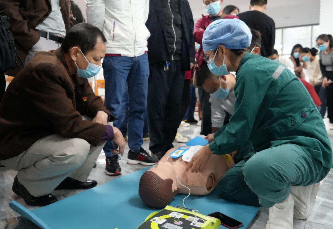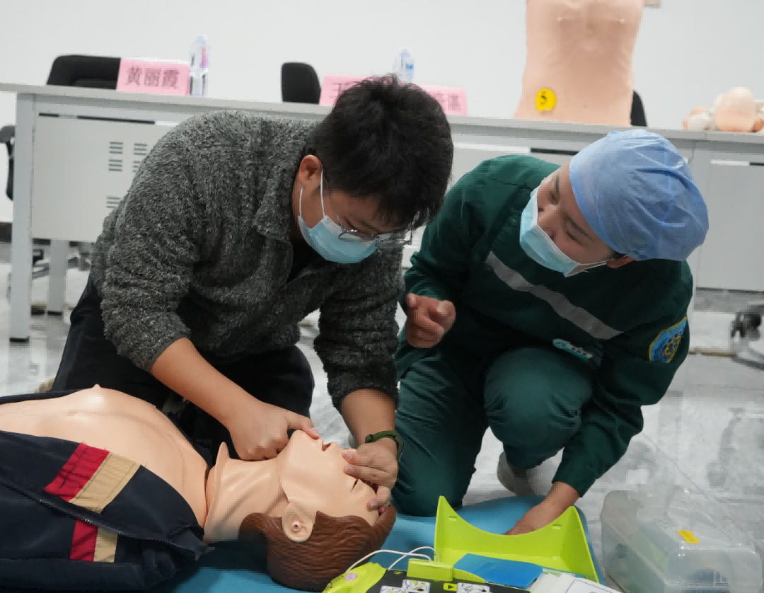 活动现场,医务人员采用理论讲解、现场演示和实践操作相结合的方式,对事发现场安全、伤者情况确认、急救措施等紧急救护知识进行了详细讲解,还对心肺复苏、自动除颤仪等急救基本技能和注意事项进行了深入介绍。大家学习热情高涨、认真学习,还纷纷进行现场应急救护操作模拟,对于操作过程中出现的一些常见错误,医务人员也在第一时间给予耐心讲解和纠正。