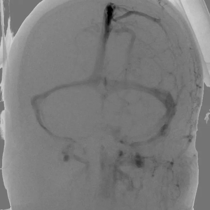 医教部主任奉继运主任医师、神经内科副主任陈荣平副主任医师组织科室成员对病情进行详细的评估和讨论,大家一致认为,其静脉栓塞范围广泛,症状随时有可能进一步加重并出现相关并发症。相比保守抗凝治疗,介入手术可为患者及时清除血栓,恢复血流,从而降低患者癫痫、脑梗死、脑出血的发生,是改善患者预后的关键。经与患者家属沟通,取得知情同意后,迅速完善术前准备,为其行静脉窦血栓介入微创取栓手术。