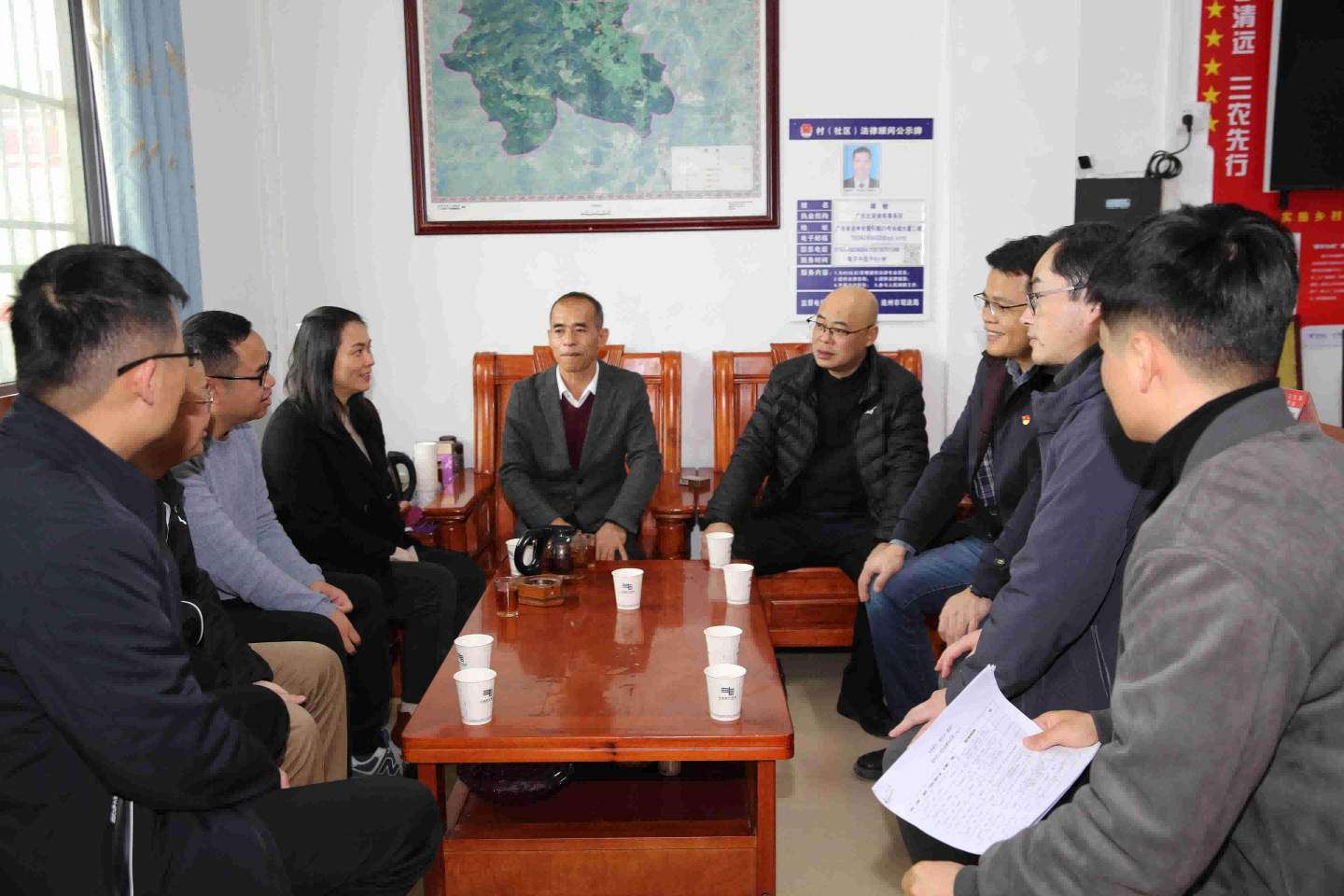 连州市人民医院党委书记易寅华、院长揭育胜、副院长万军等人首先到垦区村委会与村委工作人员进行亲切座谈,共同探讨如何推进乡村振兴工作,并提出两点建议:一是根据本村的发展计划有效地开展各项工作;二是要借助帮扶单位的资源搭建平台,为改善基层群众的生活和推进乡村振兴发挥应有的贡献。