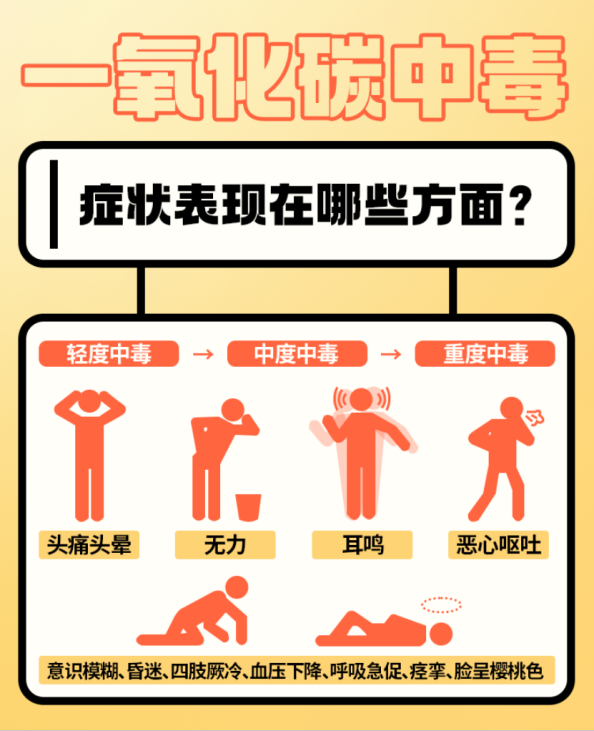 春节期间气温较低,室内使用煤炉、燃气、炭火取暖时,如果长时间关窗闭户,空气不流通,易导致一氧化碳中毒。市民在使用燃气或炭火取暖时,要经常开窗通风,以防一氧化碳中毒。发现一氧化碳中毒后应立即开窗通风,迅速关闭煤气、燃气、炭火等设施设备,同时迅速将中毒者转移至空气新鲜、通风良好处并注意保暖。尽快拨打120急救电话,尽早进行高压氧治疗。对于出现呼吸及心跳停止的危重患者,应立即给予人工呼吸和心脏按压。