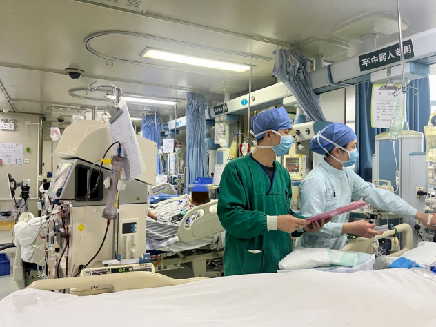 在重症医学科,监护仪、呼吸机工作的滴滴声交织着医护人员紧张有序的脚步声,忙碌的场景似乎把窗外热闹的年味悄然隔离了起来。这里的患者病情可能随时发生变化,医护人员分秒必争,有的在做纤维支气管镜治疗,有的在行俯卧位通气治疗,有的在做床旁超声检查……他们只有一个目标,竭尽全力挽救每一名危重患者的生命,守护更多家庭的团圆。